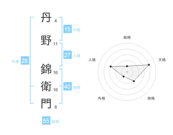 丹野 錦衛門さんを姓名の画数から五運を鑑定