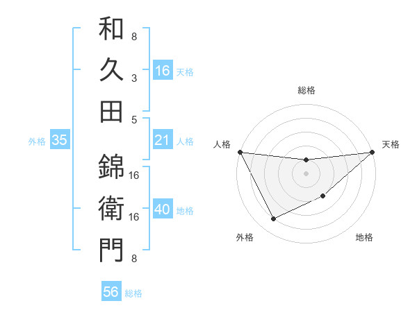 和久田 錦衛門さんを姓名の画数から五運を鑑定