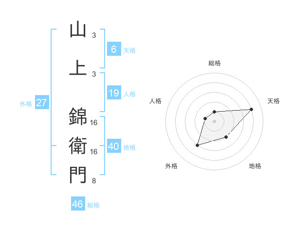 山上 錦衛門さんを姓名の画数から五運を鑑定
