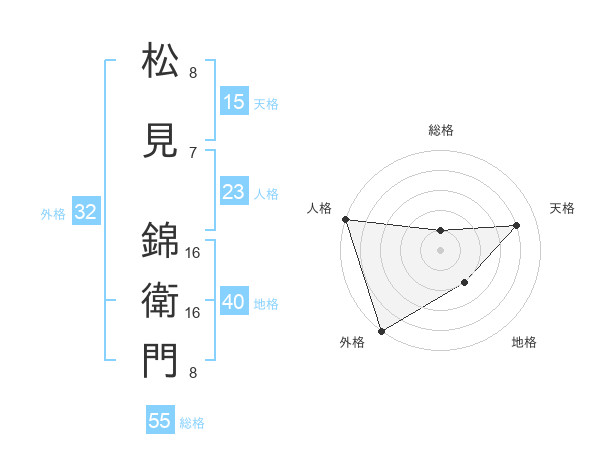 松見 錦衛門さんを姓名の画数から五運を鑑定