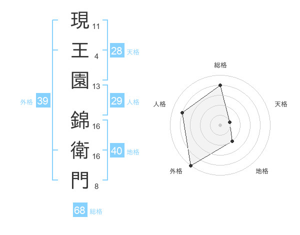 現王園 錦衛門さんを姓名の画数から五運を鑑定