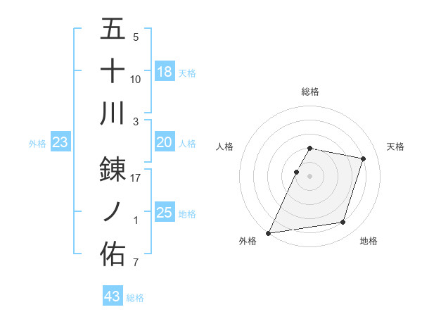 五十川 錬ノ佑さんを姓名の画数から五運を鑑定
