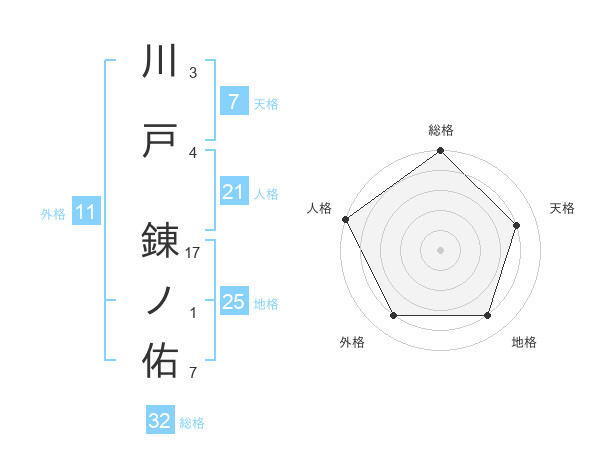 川戸 錬ノ佑さんを姓名の画数から五運を鑑定