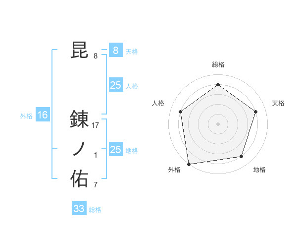 昆 錬ノ佑さんを姓名の画数から五運を鑑定