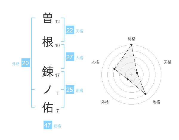 曽根 錬ノ佑さんを姓名の画数から五運を鑑定