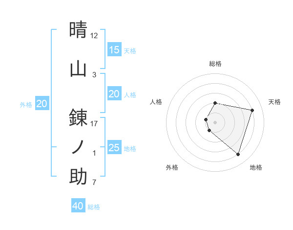 晴山 錬ノ助さんを姓名の画数から五運を鑑定