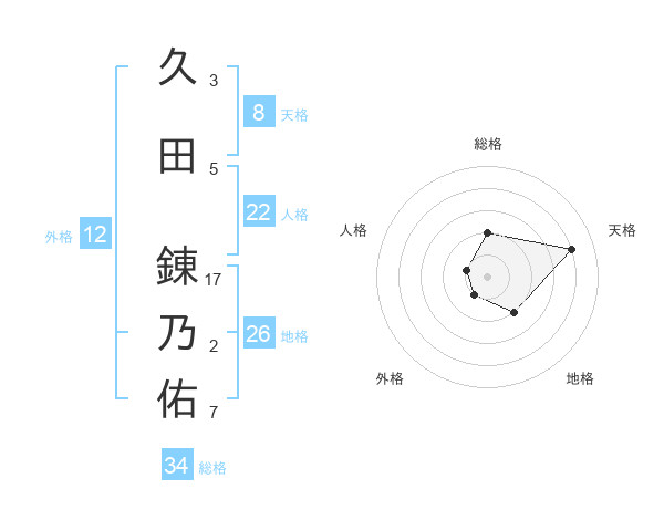 久田 錬乃佑さんを姓名の画数から五運を鑑定