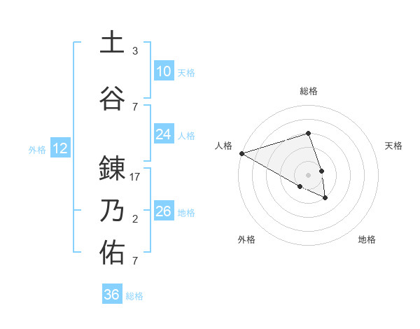 土谷 錬乃佑さんを姓名の画数から五運を鑑定