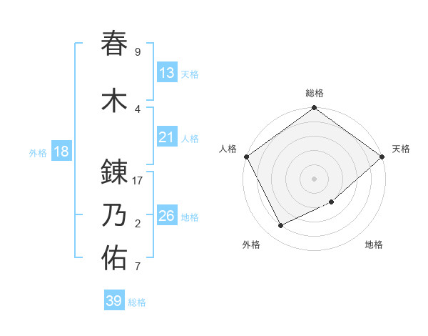 春木 錬乃佑さんを姓名の画数から五運を鑑定
