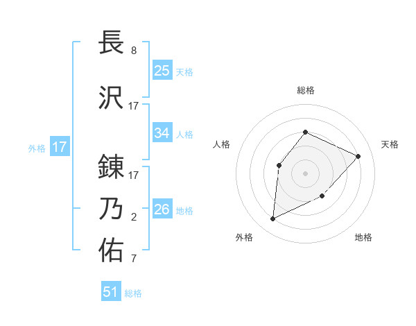 長沢 錬乃佑さんを姓名の画数から五運を鑑定