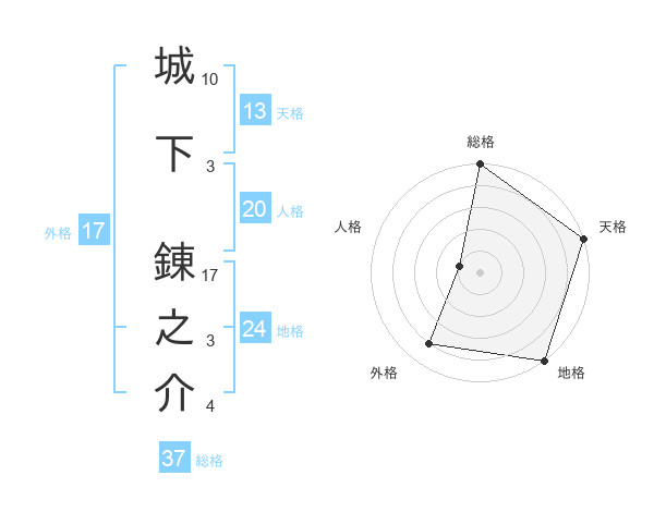 城下 錬之介さんを姓名の画数から五運を鑑定