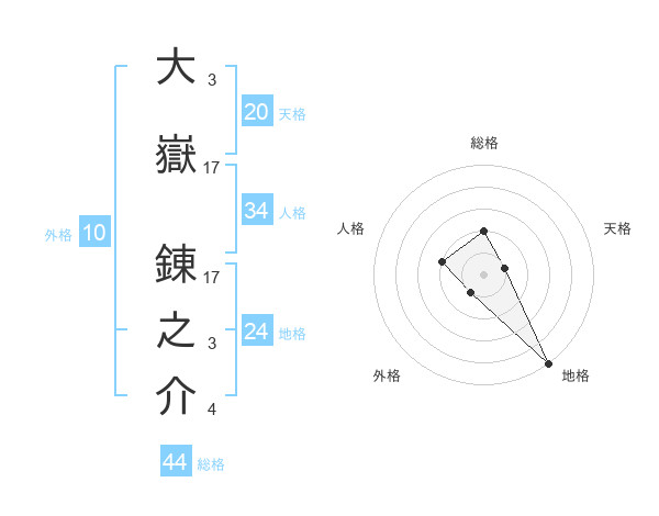 大嶽 錬之介さんを姓名の画数から五運を鑑定