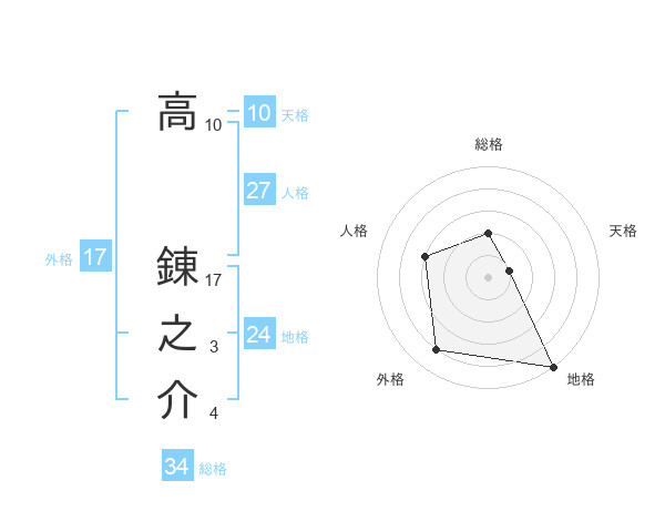 高 錬之介さんの外格は17画の4点!