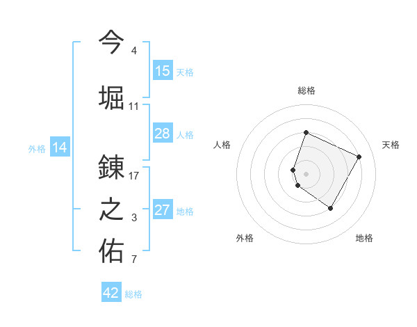 今堀 錬之佑さんを姓名の画数から五運を鑑定
