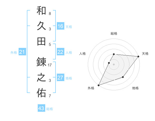 和久田 錬之佑さんを姓名の画数から五運を鑑定