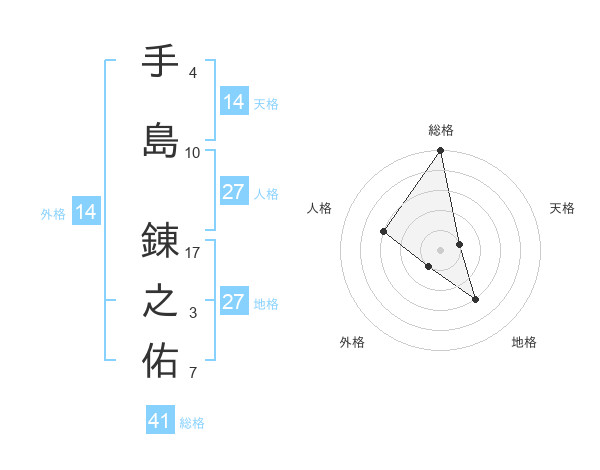手島 錬之佑さんの総格は41画の5点!