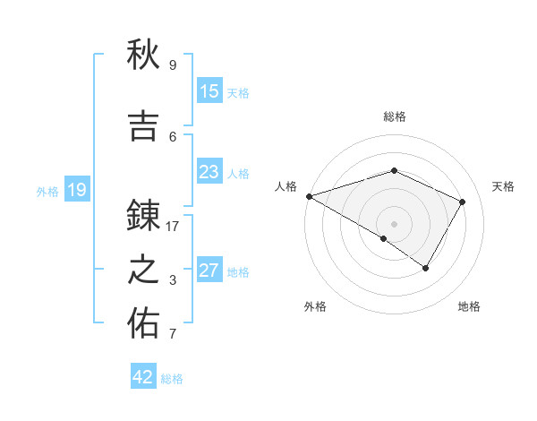 秋吉 錬之佑さんを姓名の画数から五運を鑑定