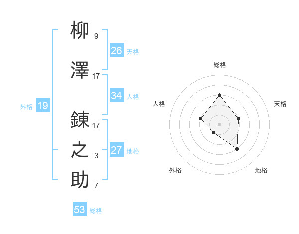 柳澤 錬之助さんを姓名の画数から五運を鑑定