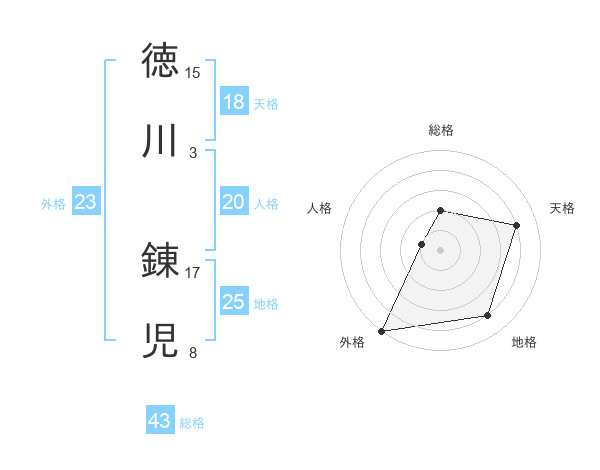 徳川 錬児さんを姓名の画数から五運を鑑定