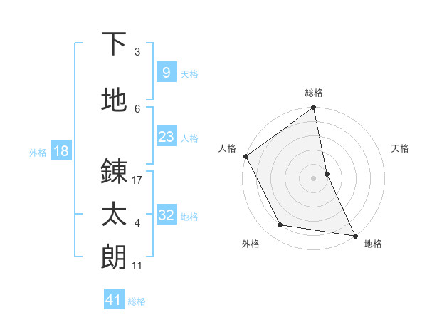 下地 錬太朗さんの総格は41画の5点!