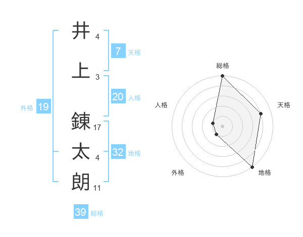 井上 錬太朗さんを姓名の画数から五運を鑑定
