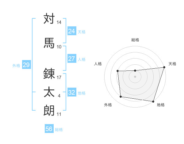 対馬 錬太朗さんの天格は24画の5点!
