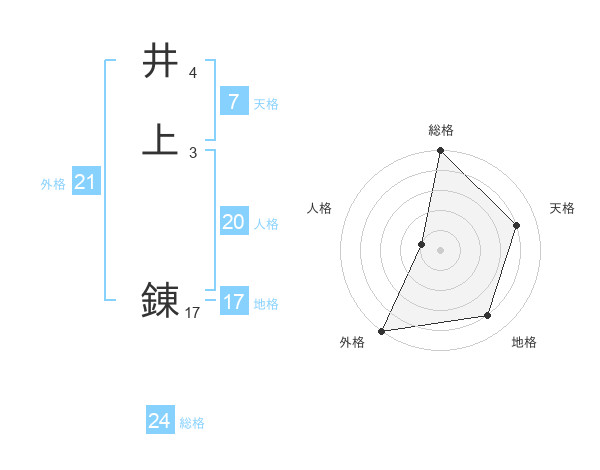 井上 錬さんの地格は17画の4点!