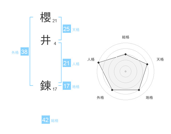 櫻井 錬さんの総格は42画の3点!