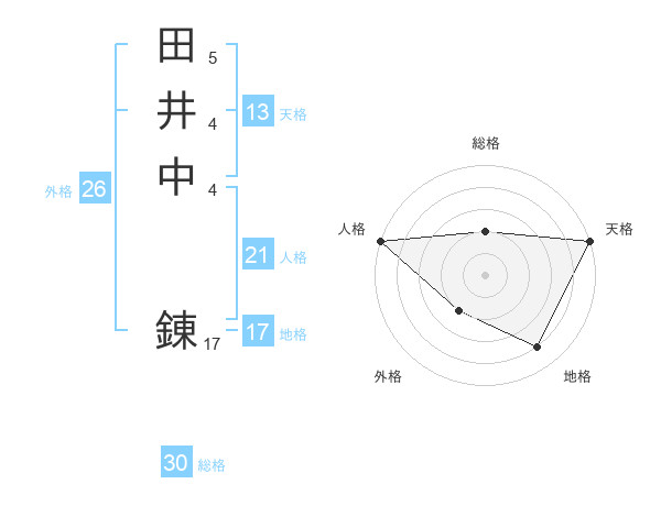 田井中 錬さんの天格は13画の5点!