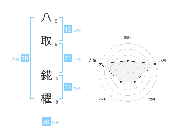 八取 錵櫂さんの総格は50画の2点!
