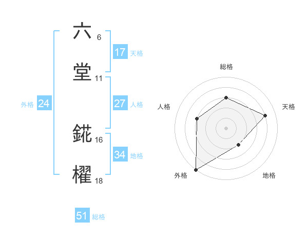 六堂 錵櫂さんの総格は51画の3点!
