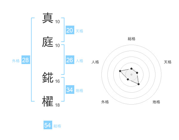真庭 錵櫂さんの総格は54画の1点!