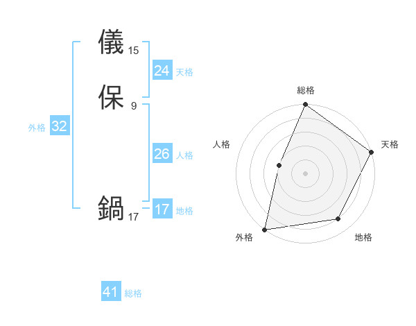 儀保 鍋さんを姓名の画数から五運を鑑定