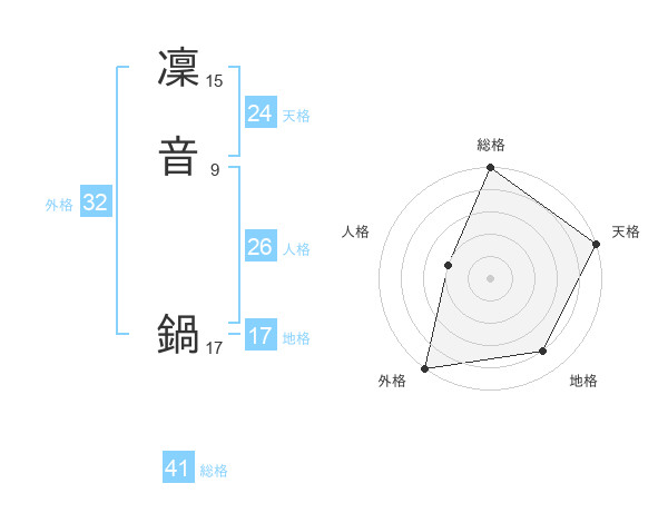 凜音 鍋さんを姓名の画数から五運を鑑定