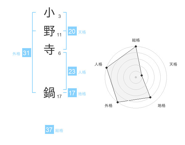 小野寺 鍋さんの総格は37画の5点!