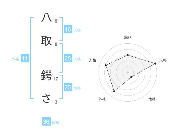 八取 鍔ささんを姓名の画数から五運を鑑定
