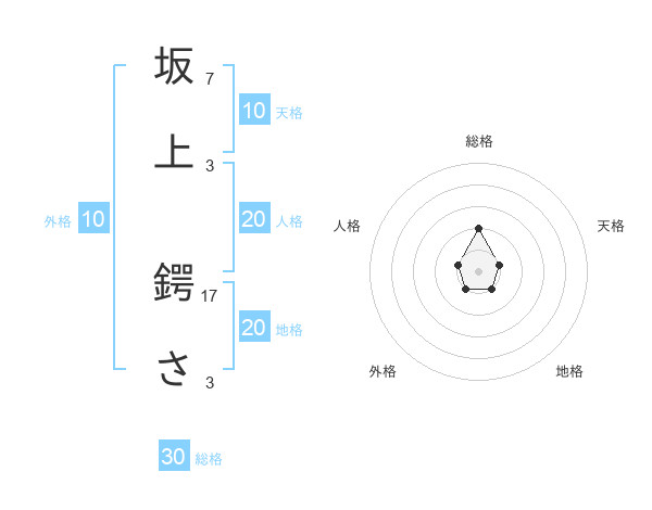 坂上 鍔ささんの地格は20画の1点!