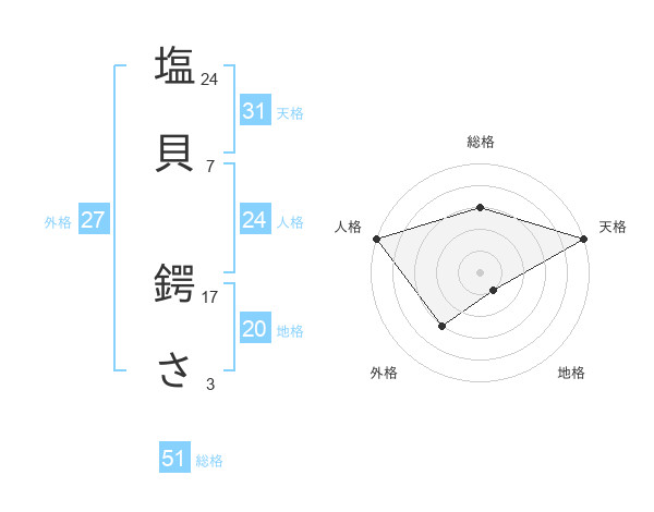 塩貝 鍔ささんを姓名の画数から五運を鑑定