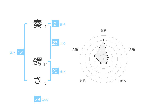 奏 鍔ささんを姓名の画数から五運を鑑定