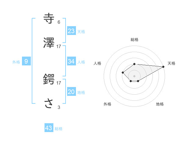 寺澤 鍔ささんを姓名の画数から五運を鑑定