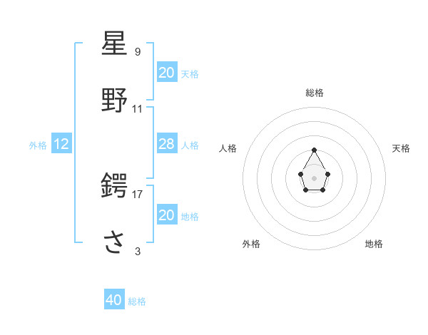 星野 鍔ささんを姓名の画数から五運を鑑定