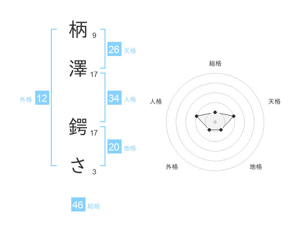 柄澤 鍔ささんの総格は46画の1点!