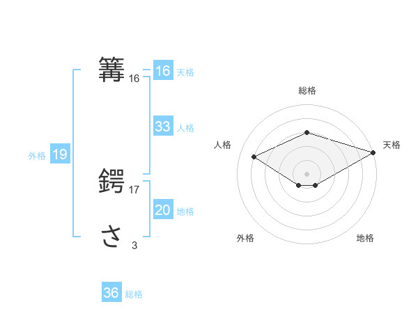 篝 鍔ささんを姓名の画数から五運を鑑定