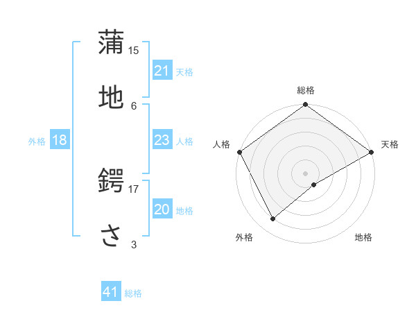 蒲地 鍔ささんを姓名の画数から五運を鑑定