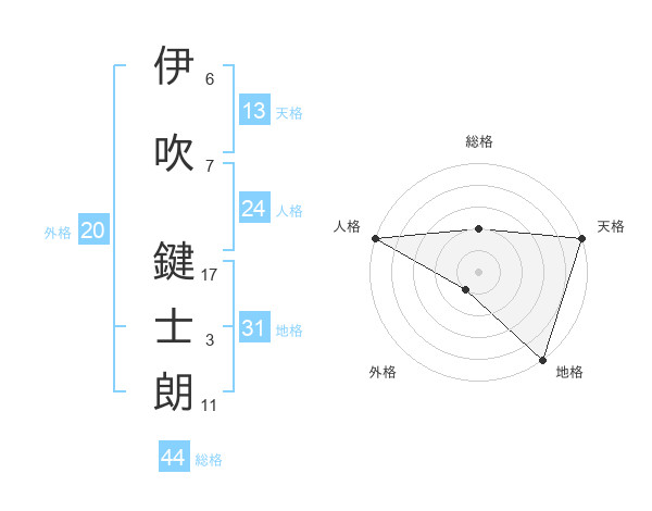伊吹 鍵士朗さんを姓名の画数から五運を鑑定