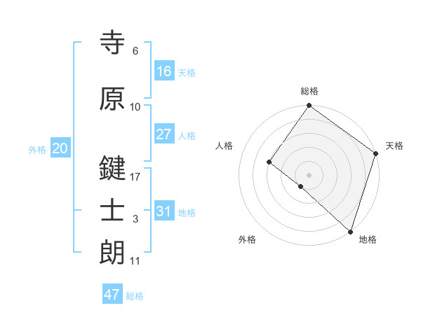 寺原 鍵士朗さんの総格は47画の5点!