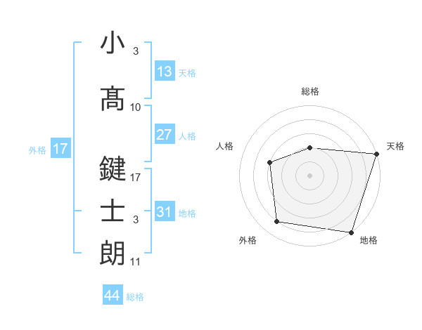 小髙 鍵士朗さんを姓名の画数から五運を鑑定