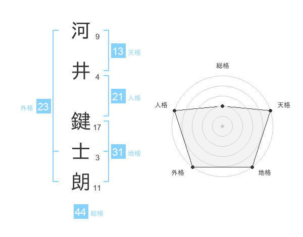 河井 鍵士朗さんを姓名の画数から五運を鑑定