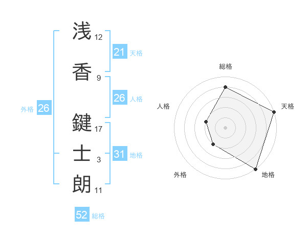 浅香 鍵士朗さんの総格は52画の4点!