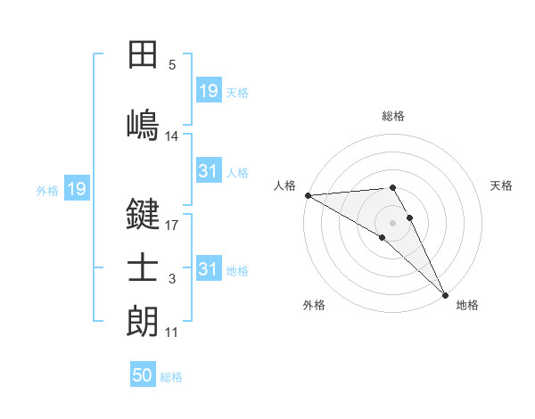 田嶋 鍵士朗さんを姓名の画数から五運を鑑定
